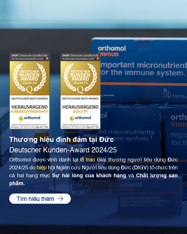 Orthomol là thành quả của khoa học dinh dưỡng hiện đại, với công thức bào chế hàng đầu châu Âu và cam kết vì sức khỏe bền vững. Các sản phẩm Orthomol được chứng nhận bởi những tiêu chuẩn quốc tế uy tín như TÜV Rheinland, ISO 22000 và GMP, khẳng định chất lượng chuẩn Đức cùng quy trình an toàn thực phẩm nghiêm ngặt.